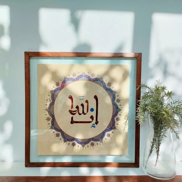 فى إطار من الخشب الذهبى المنقوش بالورود والزخارف التراثية