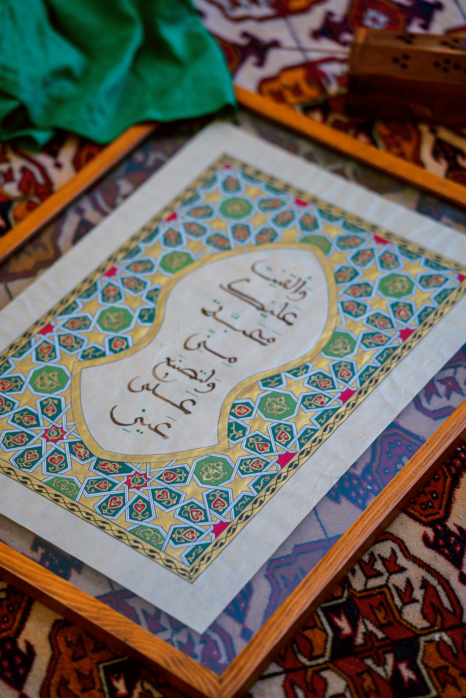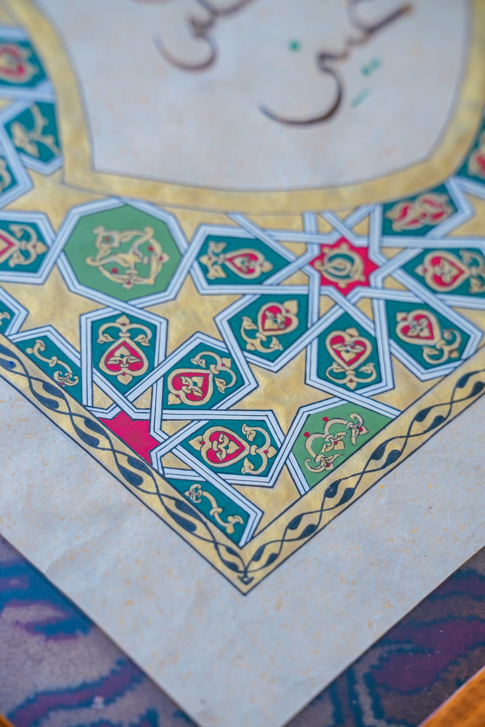 Hand gold tazhib harmonized with rich green tones
