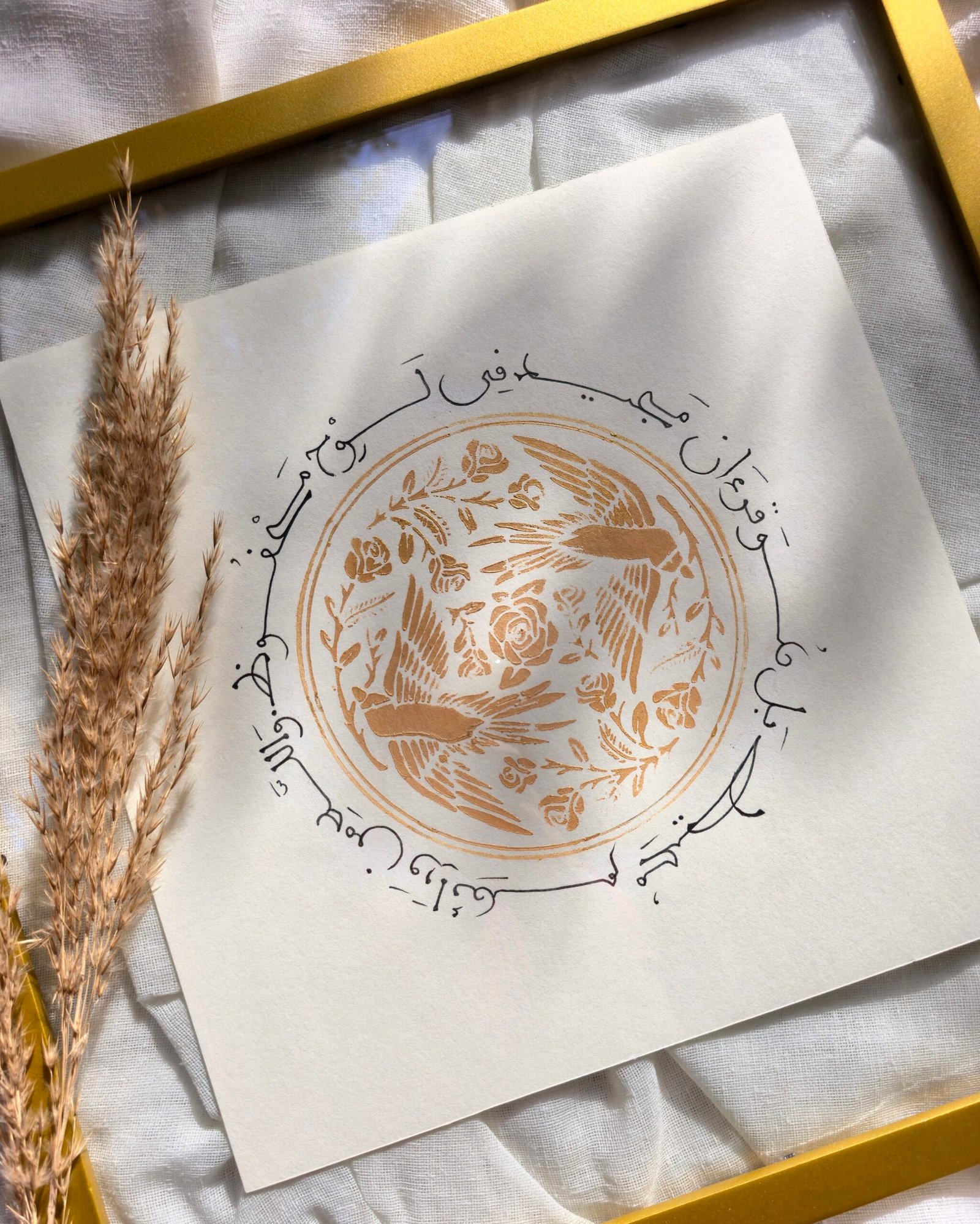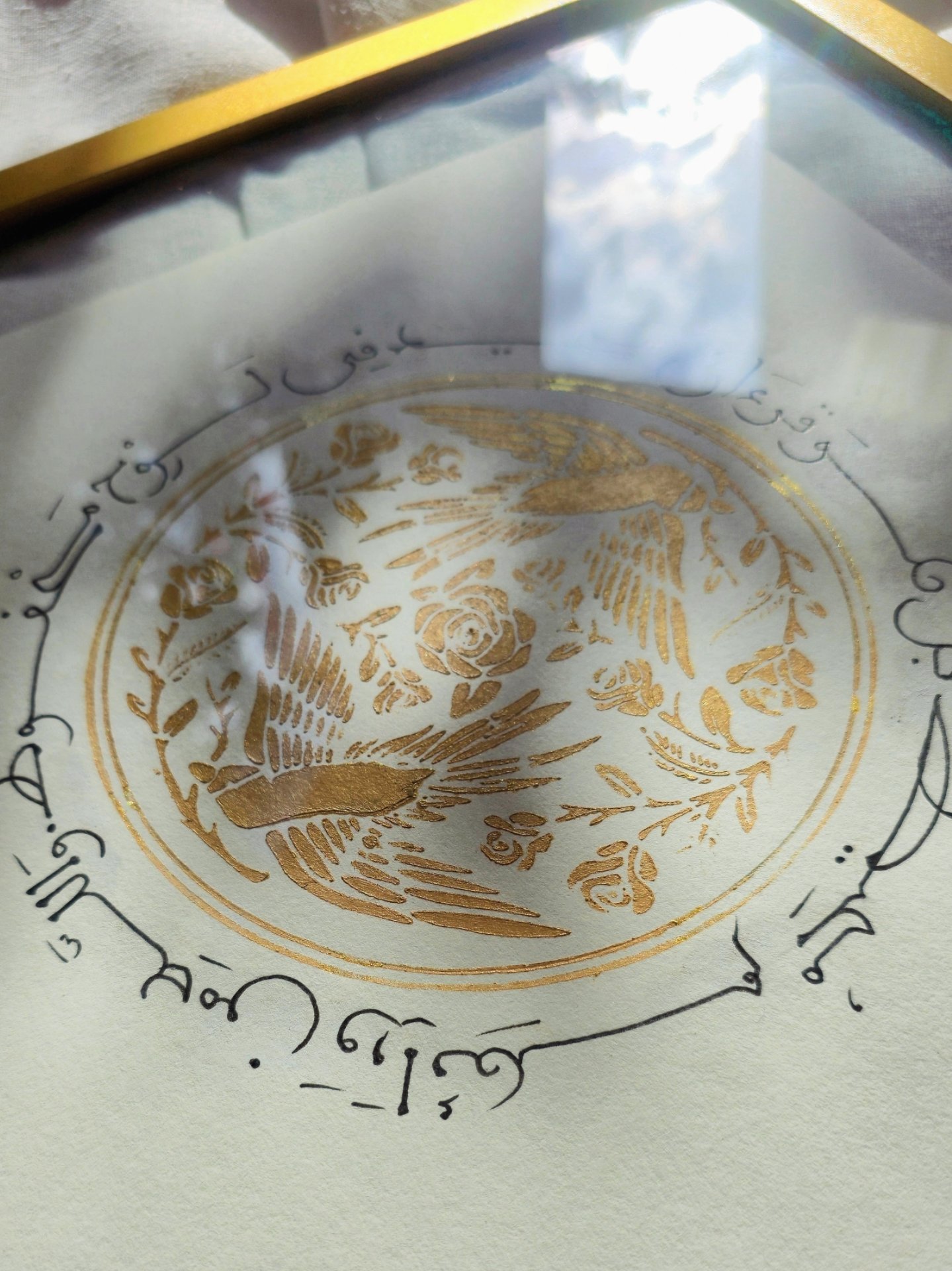 داخل برواز زجاج مزدوج ذهبى اللون