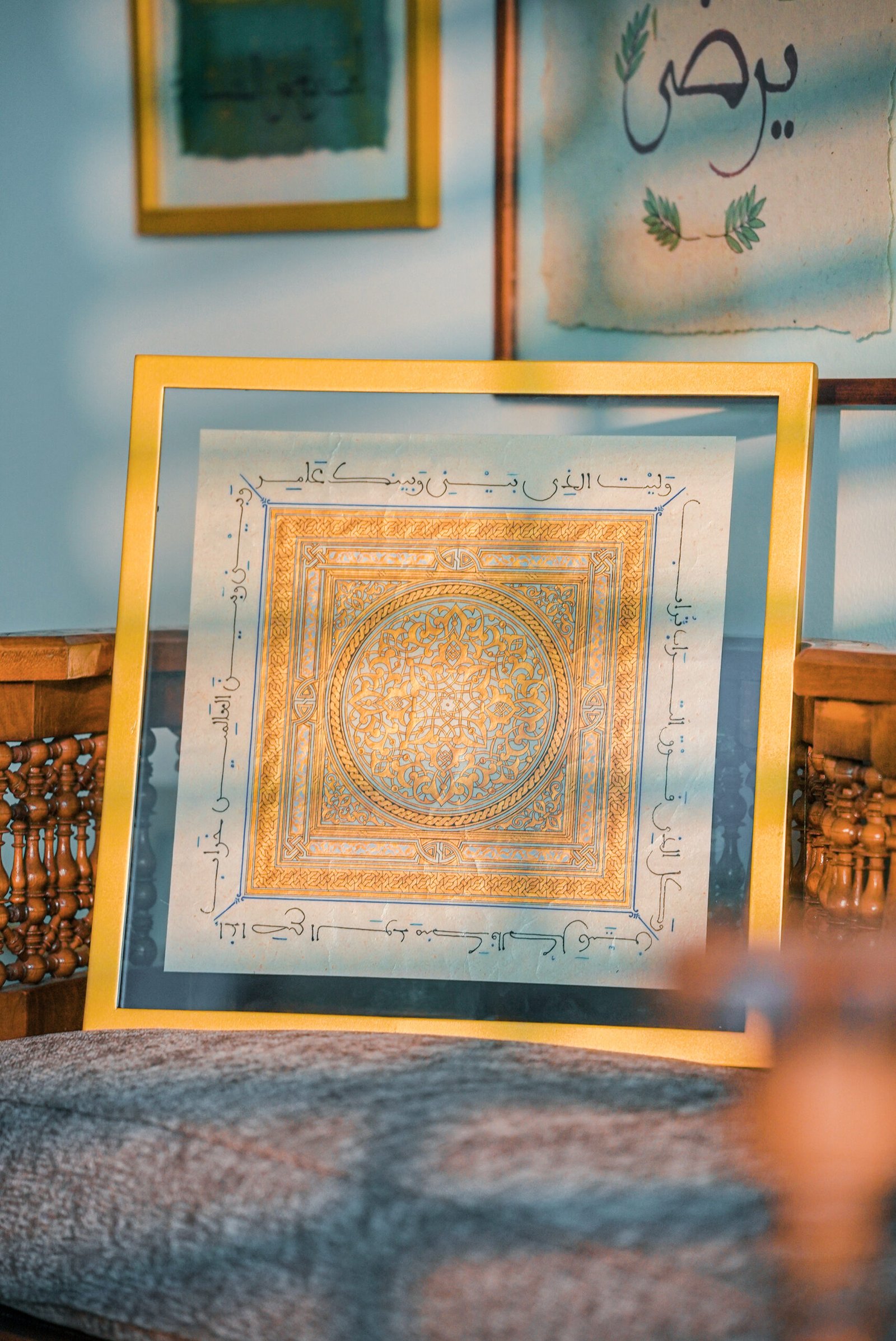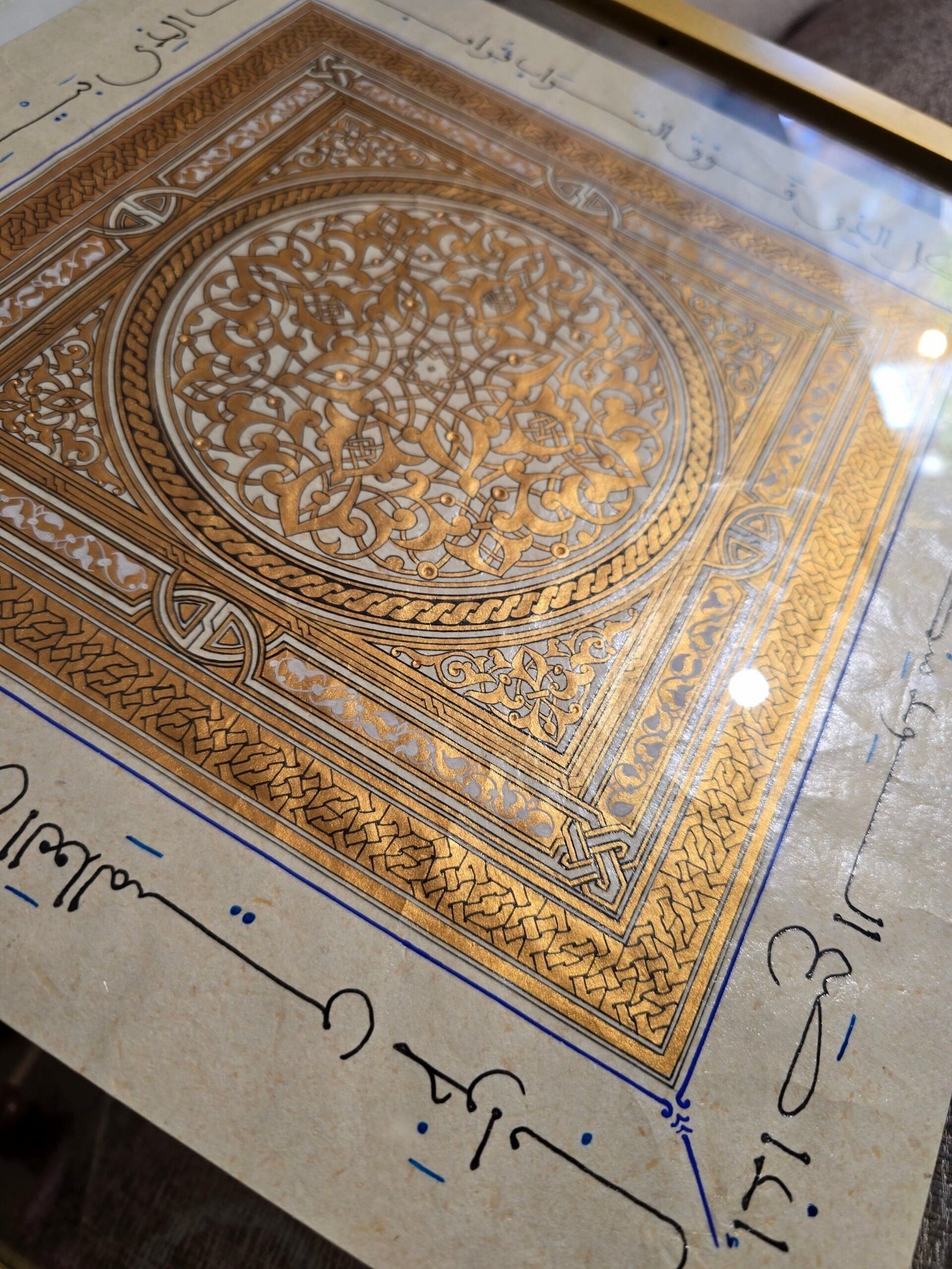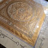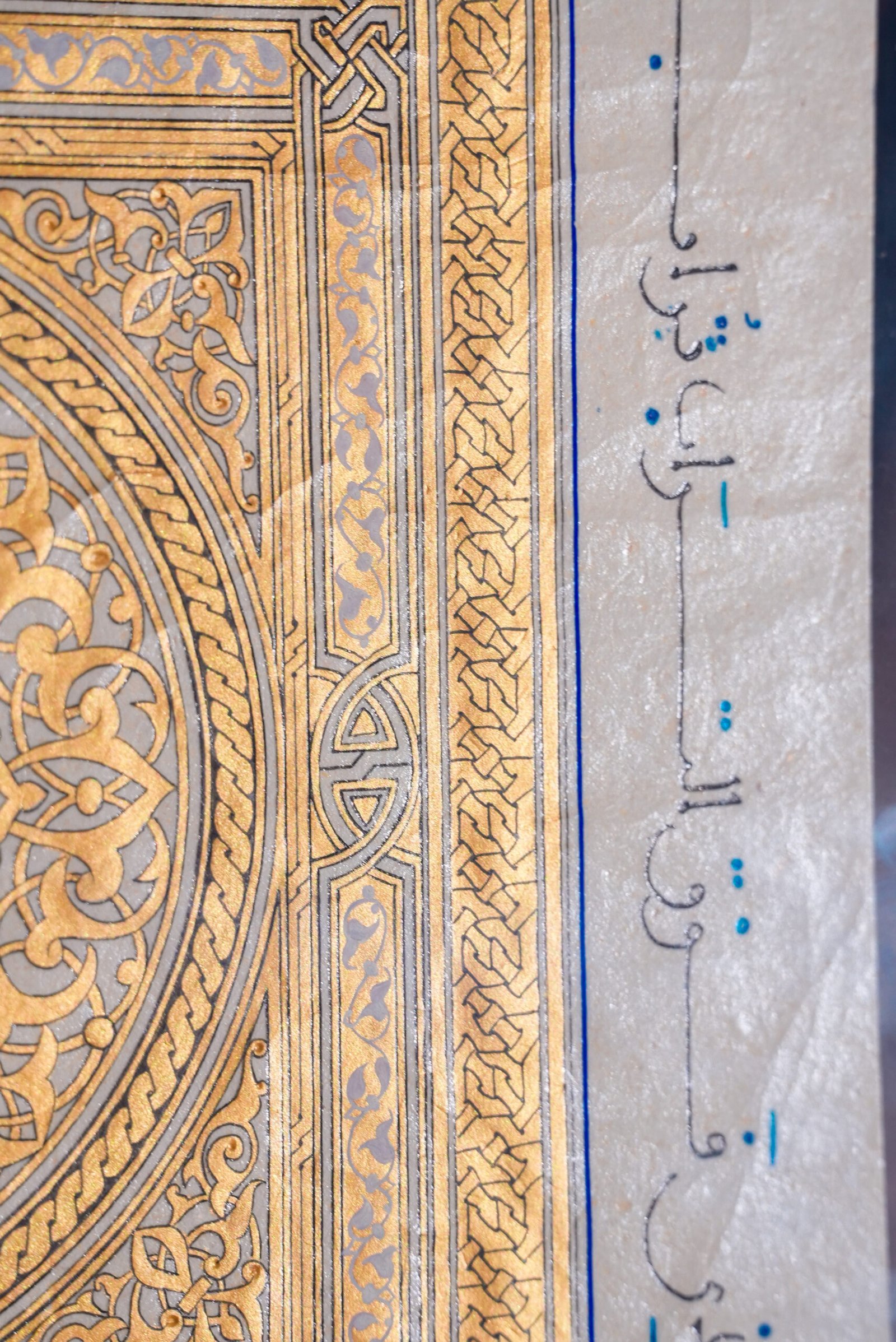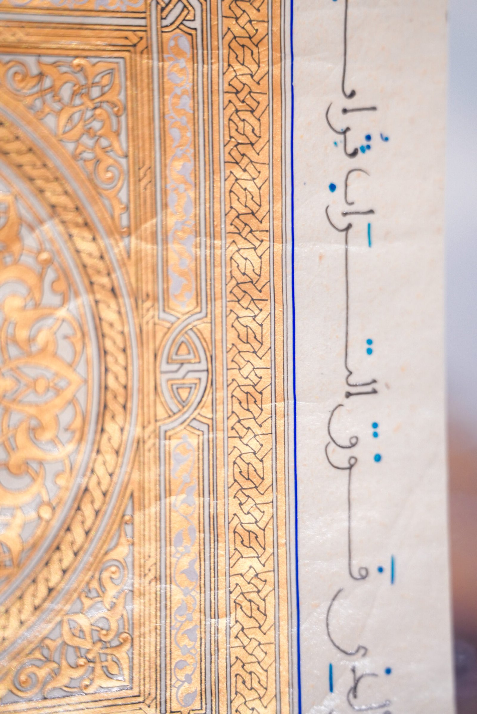 Hand painted ornamentation and tazhib inspired by classical Islamic manuscripts